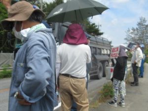 梅雨も後半になってきたが、いっこうに雨らしい雨が降らない沖縄。先週の台風でさえもほとんど降らなかった。3回目の座り込みの時間に、少しパラついたものの、スズメの涙?ほどにもならなかった。