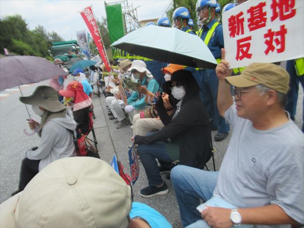 9:00前、一回目の座り込み。なんと言われようと、私たちは今日も淡々とゲート前に座り込む。明日の「わがふるさと沖縄」のために、なによりも「沖縄の明日を担う子どもたちのために」、自分が今できることを微力であろうとも実践するしかない。