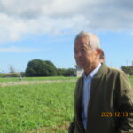 具志堅さんは、現場までの道中、何度か先導していたバイクを停め、沖縄戦と遺骨集の状況を説明した。2度目に車を停めた場所で説明の途中、急に話をやめたかと思うと、道向かいの畑に入り、あぜ道の草をかき分けた。