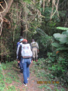 一行(8人)は具志堅さんを先頭に林の中に分け入った。
