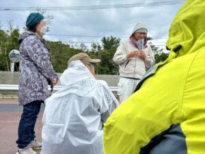 午前中は、ぽかぽか陽気で穏やかな日和だったが、2回目の座り込みに向かう頃から冷たい雨が降り出した。