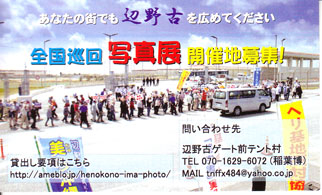 なら、あなたが、辺野古を知らせるきっかけを作ってみませんか?辺野古テント村では辺野古の座り込みの現場で起こっている出来事を広く伝えるため、「写真展用パネルセット」の貸し出をはじめました。