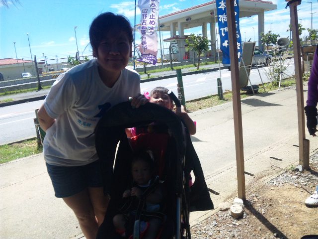 今日は京都から、0歳と5歳の女の子を連れた若いママが、乳母車を押して座り込みに参加。小さい二人の愛くるしい笑顔が、テントの下の大人たちに、瑞々しいパワーをくれた。