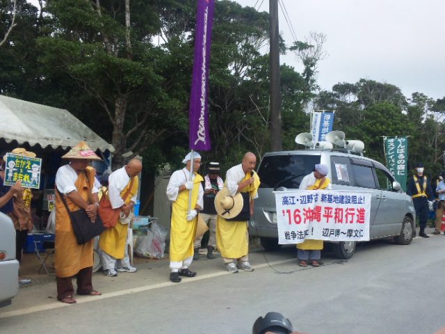 毎年、沖縄の北端・辺戸岬から、南端・摩文仁までを10日間かけて歩く平和行進を行っている日本山妙法寺の方々。