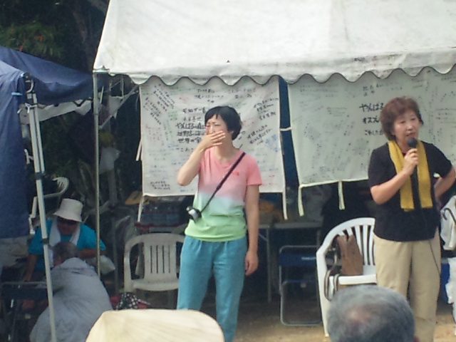 高校の修学旅行で沖縄を訪れて以来、歴史的に日本の国が沖縄に行ってきた数々の理不尽に衝撃を受け、「自分にできることは何か」と問い続けながら大学生になっても辺野古にも通ってきた若い女性。「社会人になって、自分にできることの第一歩として、まず、母を連れてきた」と。すてきな母娘の発言。