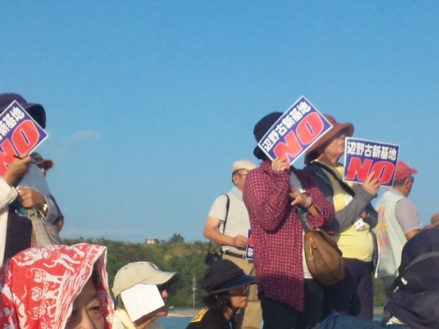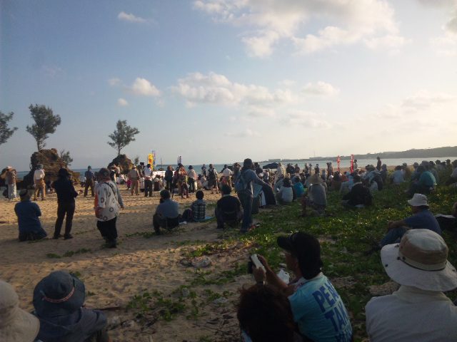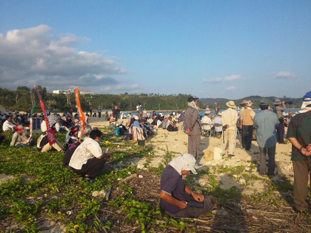 3時に高江を出て、今度は辺野古の大浦湾を臨む瀬嵩の浜で行われている「辺野古へ新基地を絶対につくらせない名護市民集会」に参加した。