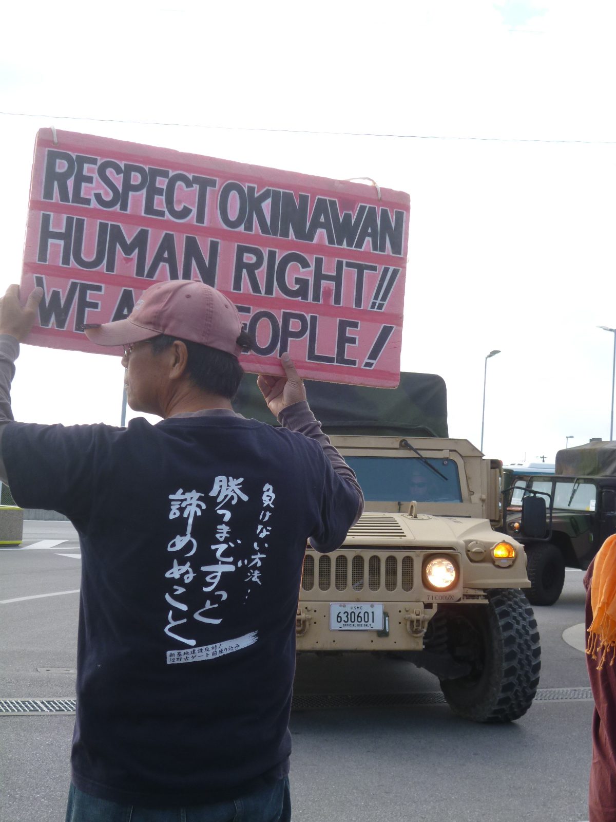 フル装備の米軍車両が、機関銃もむき出しにして公道(県道)を我が物顔に走りまわる。こんな光景は他府県では見られない。沖縄だけに押し付けられた安保の理不尽。