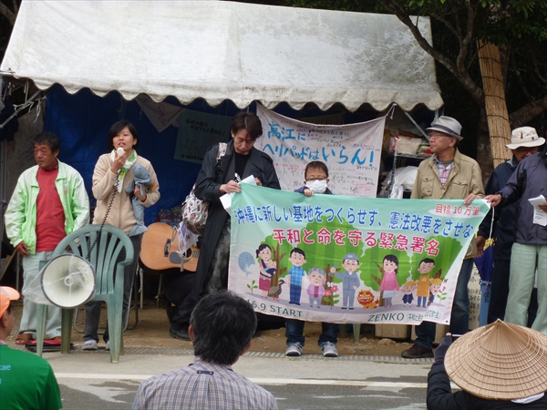 ツールド沖縄の選手たちにも激励の声をかけながら、抗議集会は午後三時まで行われた。