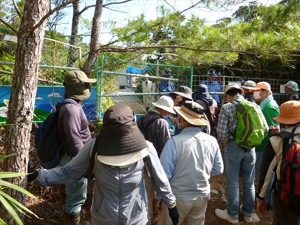 森に入って30分ほどでN1近く、山城博治さんが有刺鉄線を切ったとして逮捕の理由にされた現場に着いた。簡易の金網の壁と有刺鉄線が目に付く。
