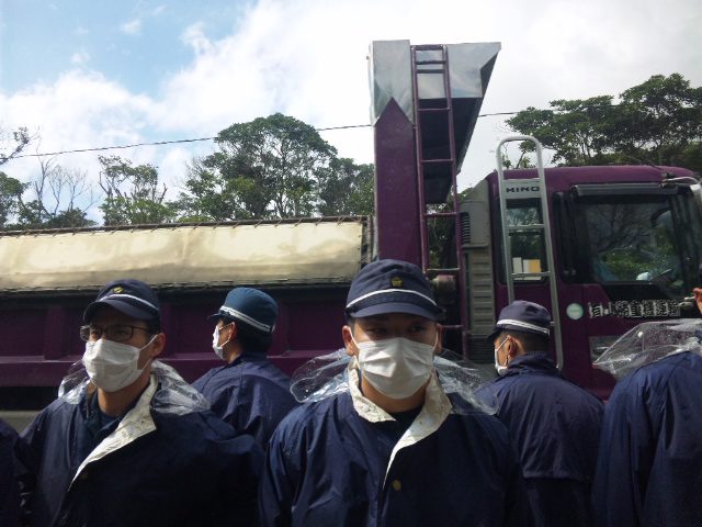 「高江N1ゲート前で、機動隊のごぼう抜きに遭い、数に勝る機動隊に取り囲まれながら、次々と森の中へ中に入っていく砂利をトラを、悔しい思いでただ見つめるしかなかった。その時、隣にいた20代と思われる若い女性が、肩を震わせて泣いているのに気がついた。