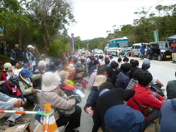 土曜集中行動日となった今日(3日)の高江は最大330人、入れ替わり立ち代わり400名近くの人たちがN!ゲートに座り込み、砂利を積んだトラックの侵入を阻止した。