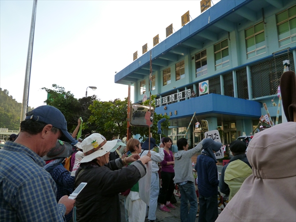 土曜集中行動日と県民大会が重なったこともあり、700名余の結集で、砂利トラックの侵入を阻止した。