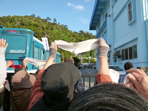 今日、平和市民連絡会チャーターの大型バスは満員御礼。6人も予約を断らざるを得なかったという。打ち続く国家権力の大弾圧に、どんなことがあってもくじけないという県民の思いが表れている。
