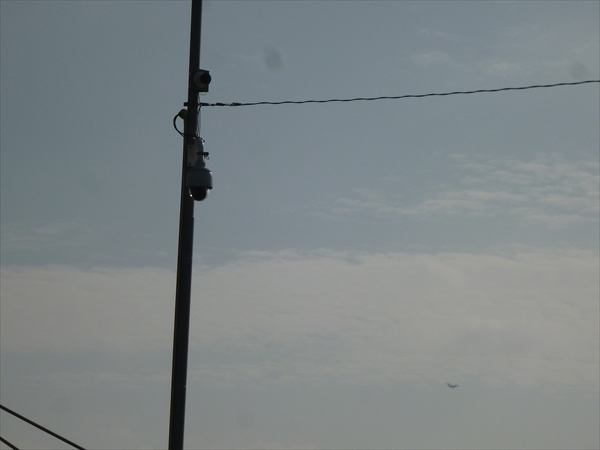 小さくて見にくいが、辺野古崎の上空を飛ぶオスプレイ。高江に向かっているのだろうか?墜落後一週間もたたずに訓練飛行を再開した後、相変わらず住民地域(那覇でも)を傍若無人に飛び回っている。