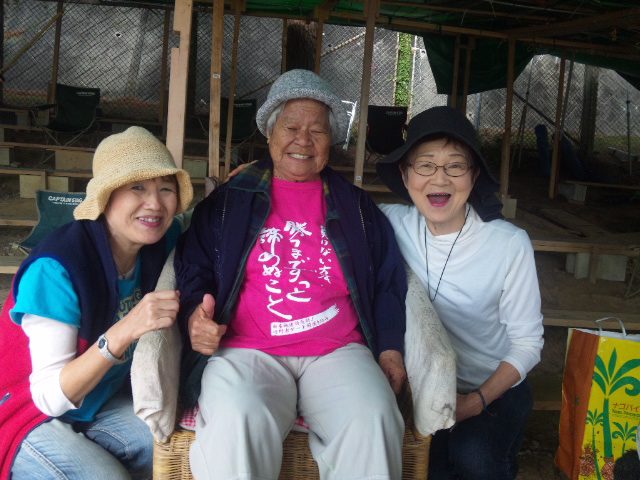 10時半以降は、テントの下で座り込みを続ける。公休日なので子ども連れも。島袋文子さんも元気に参加した。