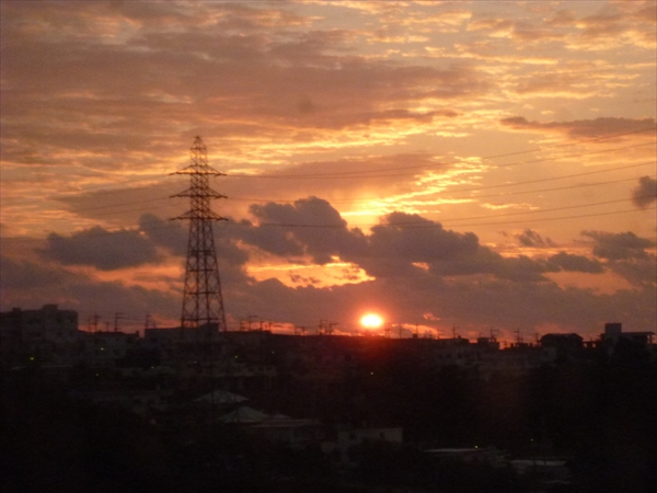 キャンプ・シュワーブのちょっと手前で、バスの中に歓声が上がる。大きく美しい朝日が昇ってきた。さっきの迷彩色を打ち消してくれるに充分な神々しいさ。それこそお天道様だ。