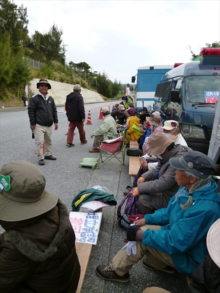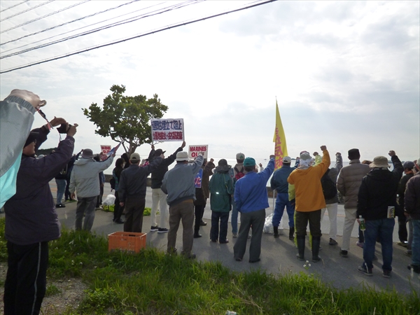 「命の海、故郷の海を壊すな!」と、必死に説得。作業員の車は説得に応じて帰って行った。作業員が中に入れなかったので、海上作業は行われなかったという。