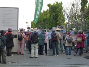 7時過ぎに辺野古到着。工事用ゲートの前では、すでに集会が始まっていた。(この日は延べ300人がゲート前に集まった)
