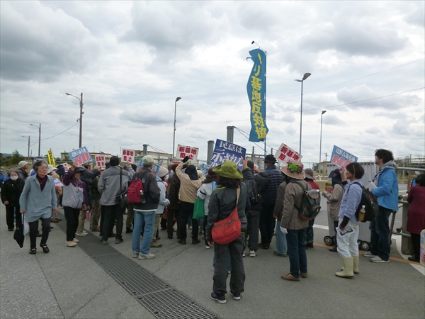 今日も工事用ゲートと、米兵が出入りするメインゲートの二手に分かれて、100人ほどが抗議行動を行わった。