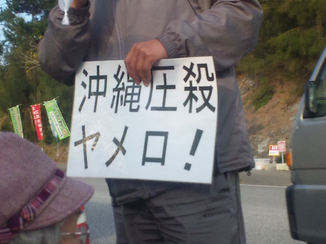 辺野古へは、宗教関係者もたくさんおいでになる。今日は広島、佐賀、岐阜から本願寺派のお坊さんが3人。「抑止力のために軍事力を強めるとはよく言われるが、それは違う。仏教の経典にこんな教えがある。危険があるから武器を持ったのではない。武器を持ったから危険になった」