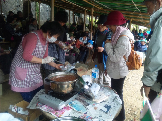 昼食時間には、差し入れの甘~いぜんざいと暖かい野菜の味噌汁が振舞われた。