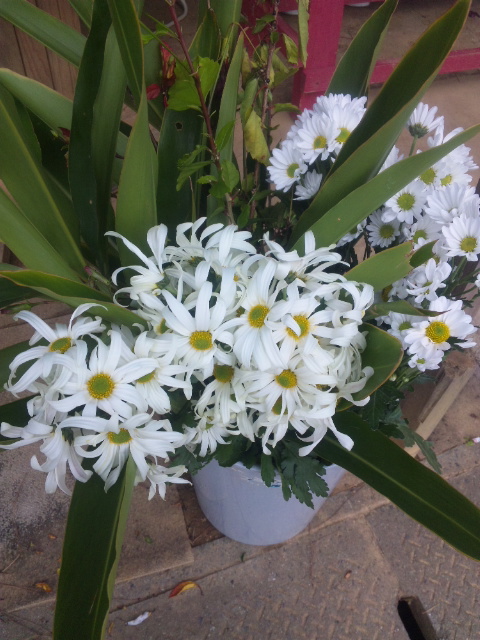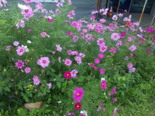 花壇のコスモスも、差し入れの白い菊の花も清々しい948日目の辺野古ゲート前でした。
