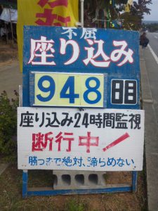 座り込みの中心は工事用ゲート。工事に関連する車両が入るのをみんなで止める。