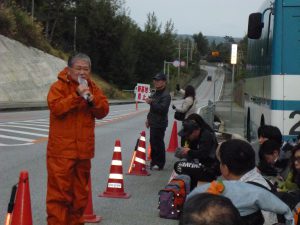 みんなが座り込んでいる目の前で、トイレ送迎車が追突されるという交通事故があり、事故処理のため抗議行動は、一時間以上ストップした。