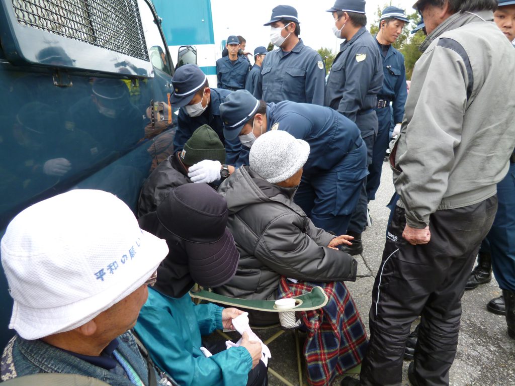 今日不屈の座り込み965日目を迎えた辺野古。延べ200人以上が集まったが、2度機動隊の強制排除(ごぼう抜き)にあい、7台の工事車両の出入りを許してしまった。