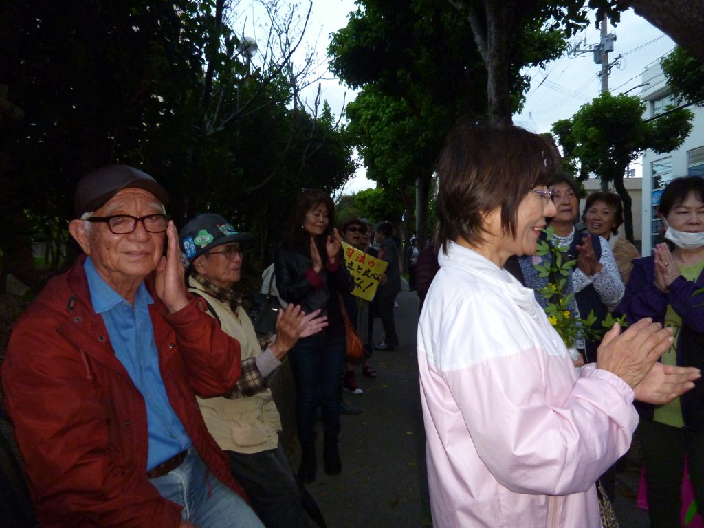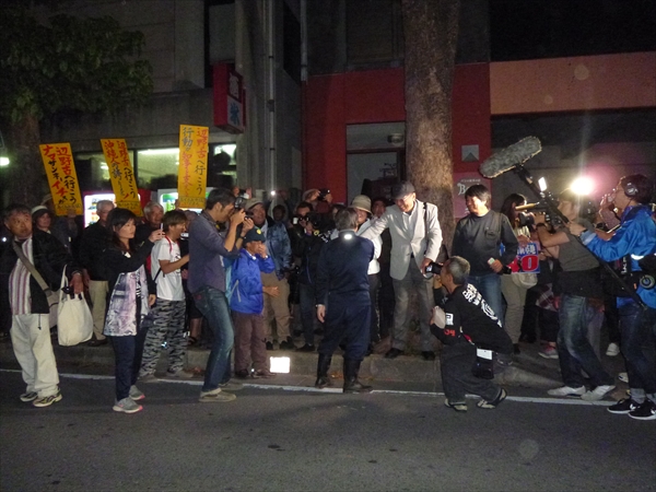 博治さんが帰ってくる喜びでみんなが一つになった那覇拘置署前3月18日午後4時30分から4時間のドキュメントでした。(記者会見の模様は、新聞などでご確認ください)