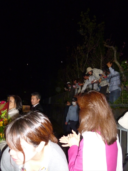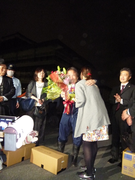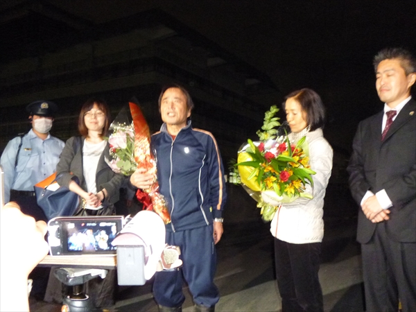 20:20 記者会見場に向かうため20分ほどでこの場は切り上げたが、博治さんは、塀の上、道路向かいで見守っていた一人ひとりへ握手の手をの手を伸ばして、再会を喜び合った。