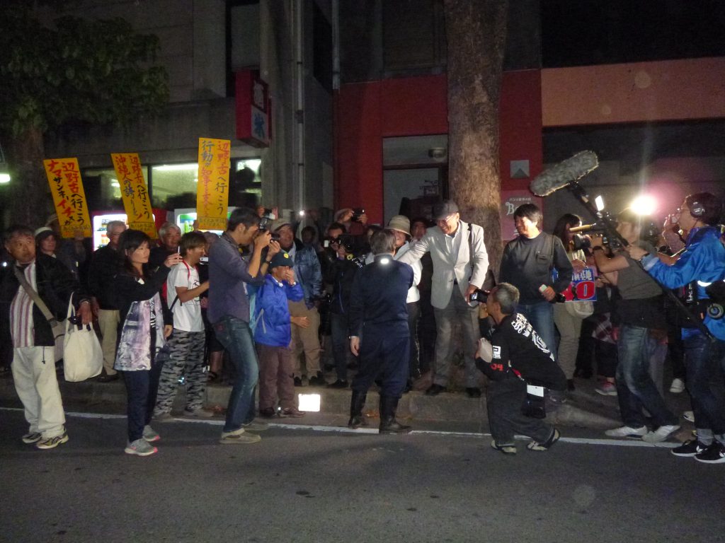 「記者会見の前に、博治さんをみんなで出迎えよう」との新たな連絡で、辺野古の帰りの車でそのまま拘置所前に直行。