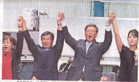 <昨年12月22日、オスプレイの墜落に抗議する県民集会に参加した翁長知事>