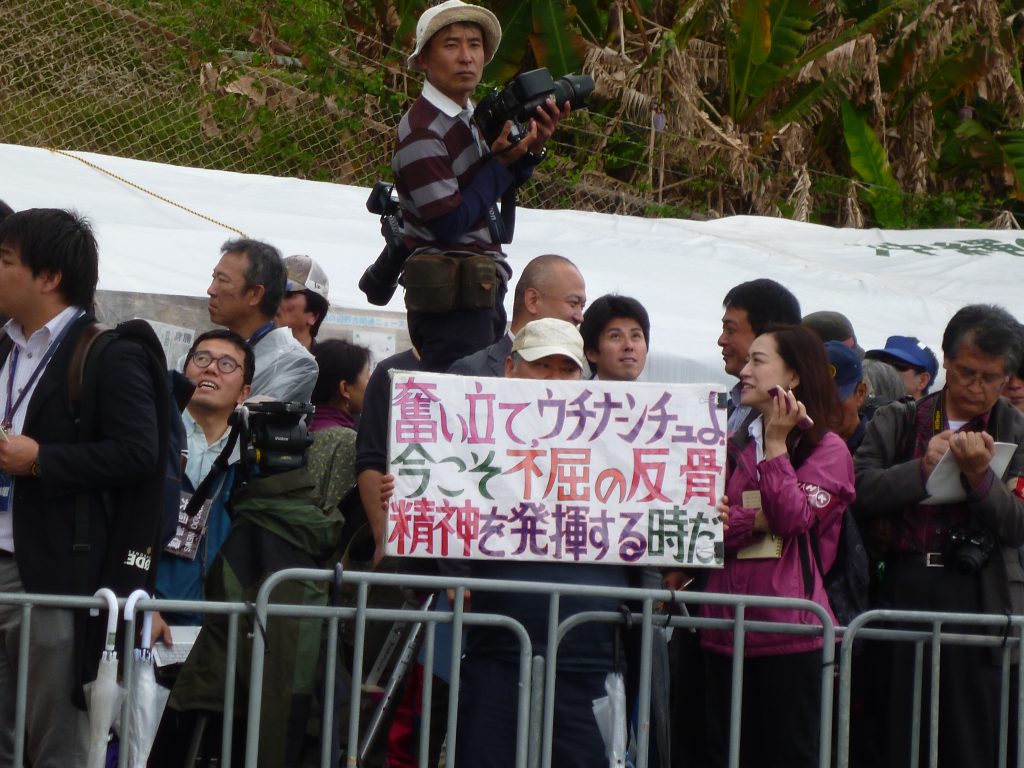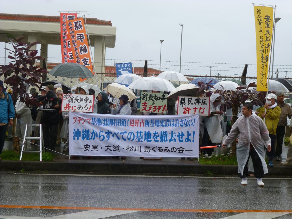 今日25日、辺野古キャンプシュワブゲート前で行われた「辺野古新基地建設断念を求める県民集会」に翁長県知事が「県民の闘いは新たな段階に入った。埋め立て承認撤回、私は必ずやる!」と決意を表明。保釈中の山城博治さんも集会開催前に登壇し、多くの支援に感謝を野別と共に「私に向けられた弾圧はここにいる皆さんへの弾圧であり、ひいては県民全体への弾圧と同じ。国家権力がどんなに牙を剥こうとも、屈しない、闘い抜く」と、新たな闘志を表明した