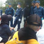 しかし、先週、京都から新幹線に乗り、生まれ育った故郷へ行くため新神戸の駅で降りたところ警官がすっ飛んできた。「そのプラカードを片付けろ!」と言われた。「関係ない」と無視して改札を出たとたんに、十人ほどの男に取り囲まれた。無理やりプラカードをとりあげられたという。