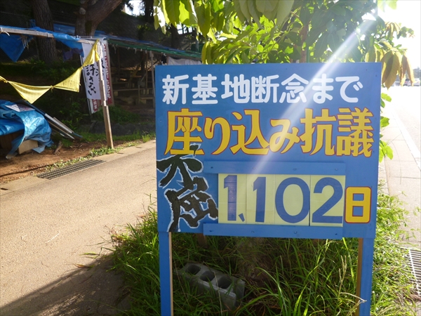 集中行動日の辺野古ゲート前。今日は正午から那覇で山城博治さんたちの裁判支援事前集会がある他、高江も昨日からオスプレイが、新しいヘリパッドで飛び始めたこともあり、参加者が分散され、いつもの水曜日に比べて参加者が少ない感じがした。
