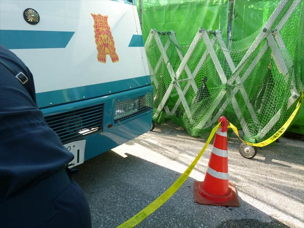 座るのに邪魔になるので、少し後ろへずらすと機動隊員がすっ飛んできた。