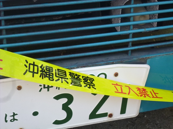 座り込みの準備をしようと工事用ゲートにやってくると、ドラマなどでよく見かける「立ち入り禁止」の黄色いテープが、警察車両を囲むように張り巡らされている。