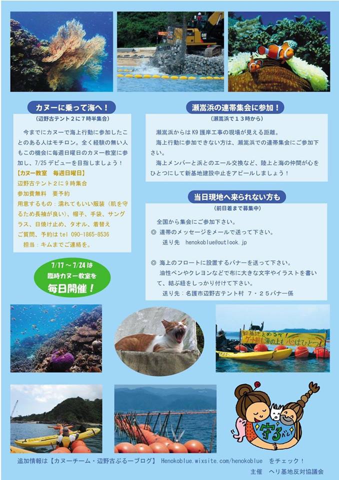 ・とき7/22(土)14:00~15:00・ところ:辺野古集落~第3ゲート(約1.5㎞)・主催:県民会議。