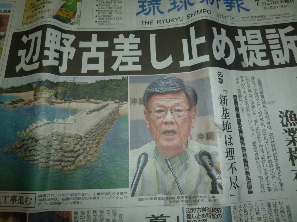 去る24日、沖縄県は、前知事が認可した岩礁破壊許可が3月末で期限切れとなり失効したにも関わらず、国が工事を強行しているとして、沖縄県は工事差し止めの裁判を起こした。