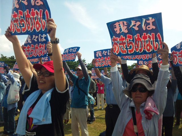 速報!県民大会~4万5千人が「辺野古 NO」 「翁長知事を支え、辺野古新基地をつくらせない県民大会」 翁長知事も参加し「辺野古の新基地は、絶対につくれないと私は確信している」と、力強く連帯の挨拶をした。 沖縄の灼熱の太陽にも負けず、4万5千人が結集 沖縄~平和のメッセージ 2017年8月12日unaiリンクURL この記事を共有する → Tweet Pin It