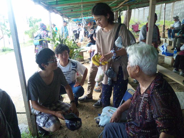 県外、海外からの参加者も。高知県から参加した若者4人は、沖縄出身の一人の女子学生から沖縄・辺野古の話を聞き、夏休みを利用して一緒に辺野古へやってきたという。「一人の力はすごいね」との声が聴かれた。