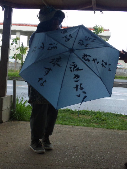 <「傘もどうせさすなら楽しくかつ実用的に!と工夫を凝らして」と、糸満島ぐるみの女性メンバー>