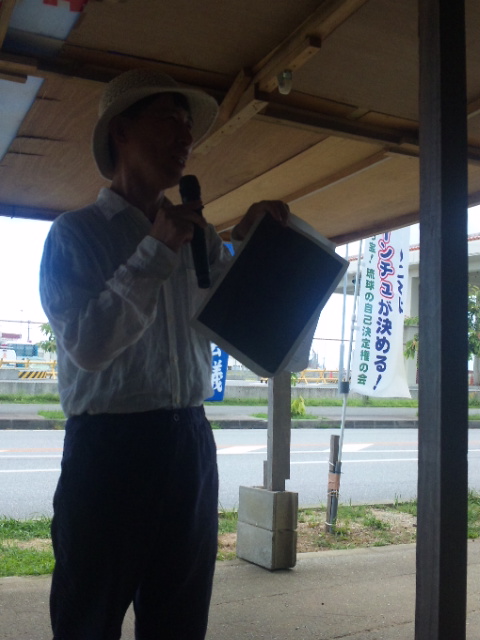 8月30日、午前6時、平和市民連絡会のバスで那覇を出発。水曜日は集中行動日で南部と北部の市町村の「島ぐるみ」の当番。そして、ゲート前は「平和市民」の女性が指揮を担当する日である。