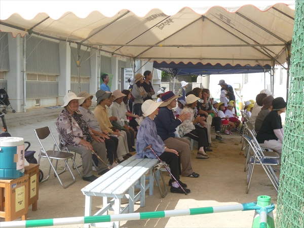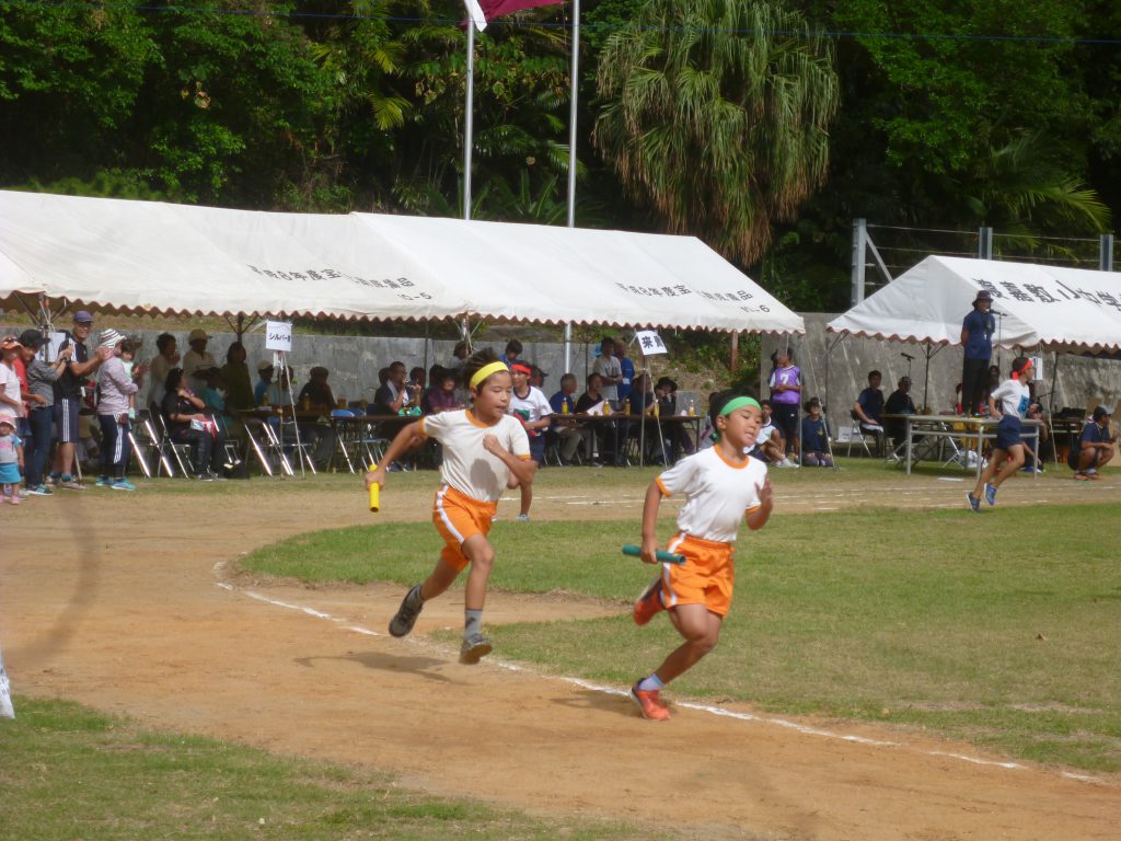 私が覘いたときは、ちょうどチーム対抗リレーの真っ最中。離島の小さな学校なので、学校行事も村中が総出で参加します。会場にはシルバー席なるものが設けられていて、在校生がいないシルバーさんたちも子どもたちに、一生懸命声援を送っていました。