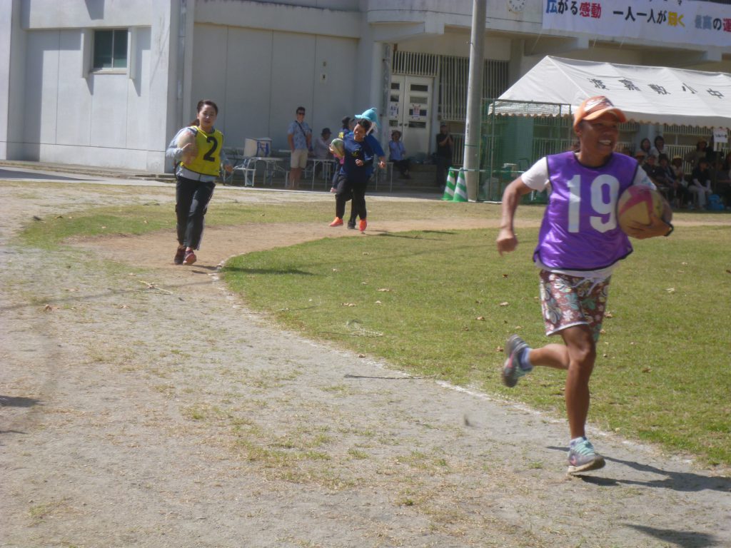 大人も見て応援しているいるだけではありません。ラグビーボールをバトン代わりに職域対抗リレーが楽しそうでした。