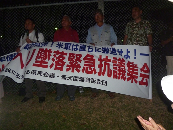 米軍ヘリが不時着、炎上した現場地主の西銘晃さん(64)は矢ヶ崎氏の調査で放射線が検出されたことについて、記者団に対し、「出たと聞いて、びくっとした」と驚いた様子で語った。その上で「高江の若い消防団員が消火活動で(炎上した米軍ヘリから)10メートルくらいの近さにいた。彼らの健康診断も早くしてほしい」と心配そうに話した。さらに「真っ先には考えるのは健康被害だ。風評被害も怖い。確定したわけではないと思うが、(放射線が)検出されれば(この土地は)一生使えない」と声を落とした』
