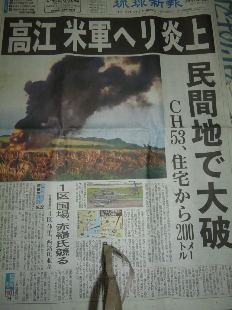 今回事故を起こしたCH53は、6月にエンジントラブルで久米島空港に緊急着陸した同じ機体であることも判明した。米軍は老朽化したCH35を安全が確保されないまま飛ばし続けていることになる。