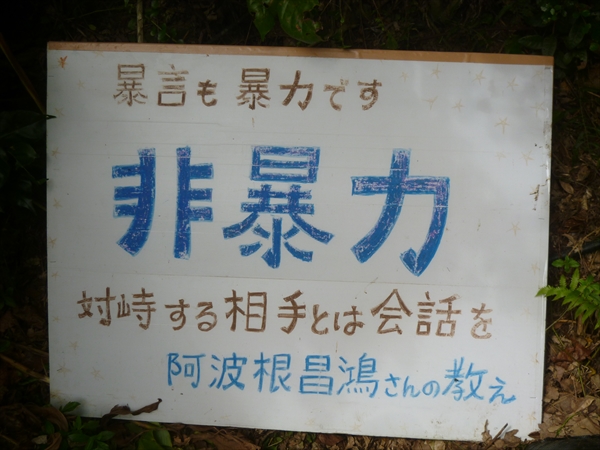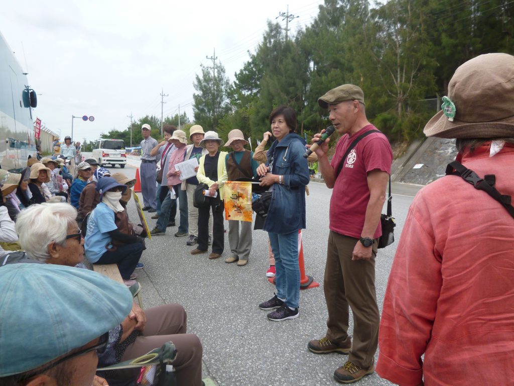 今日も県外からたくさんの人たちが参加した。三重と岐阜から11人のメンバー。マイクを握った男性は、「昨年、自転車で日本一周をしていた時、辺野古に遭遇した。すごい闘いをしているところがあると感動した。通りすがっただけだったが、2か月半も辺野古のテントで寝泊まりして沖縄の人たちと共に座り込んだ。 地元に戻って友人、知り合いに声をかけて、第一期沖縄辺野古ツアーを組み11人でやってきた。二期、三期とこれからも輪を広げていきたい」