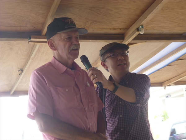 この日、ベトナム戦争中に反戦を訴え、空母イントレピッドから脱走した米兵で著述家のクレイグ・アンダーソン氏(講演のため来沖中)が辺野古を訪れた。